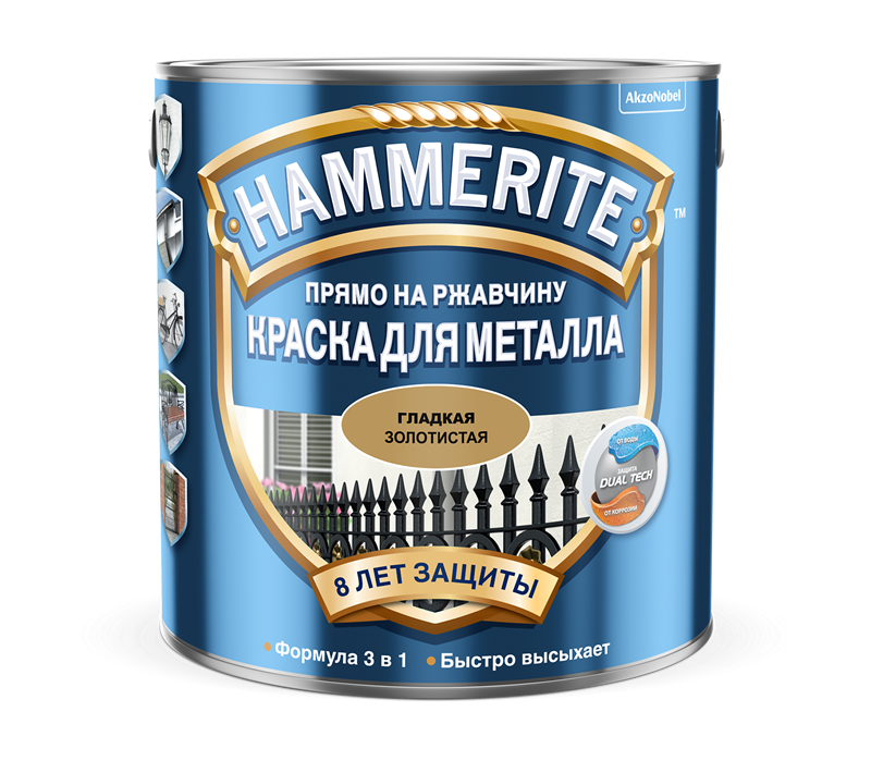 Алкидная краска по металлу для создания гладкого глянцевого покрытия. Можно наносить прямо на ржавчину. Восковые добавки обеспечивают двойную защиту основания от H2O до 12 лет.